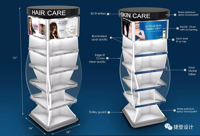 进口品牌化妆品包装陈列展架设计参考
